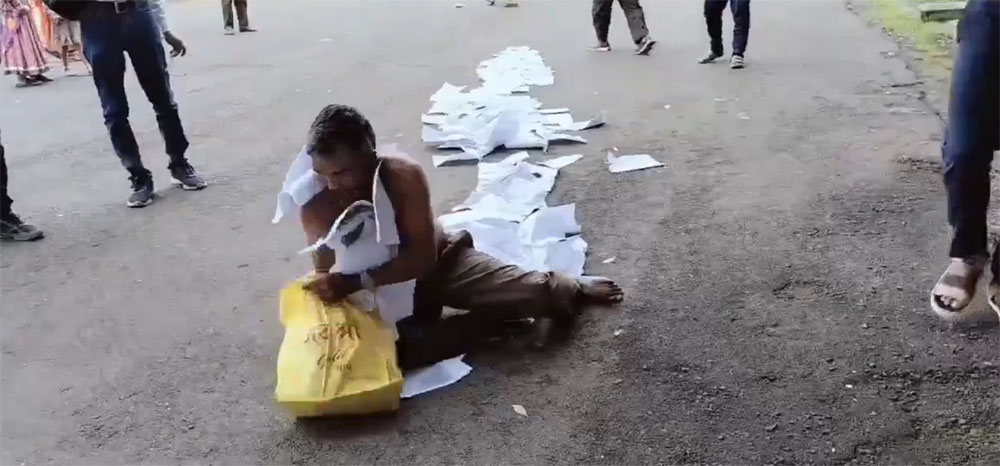 नीमच :- नीमच कलेक्टर कार्यालय में मंगलवार को जनसुनवाई में एक शख्स कागजों की माला पहनकर घिसटते हुए...