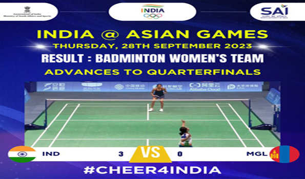 हांगझोउ. भारत की बैडमिंटन महिला टीम ने गुरुवार को मंगोलिया को 3-0 से हराकर क्वार्टर फाइनल में...