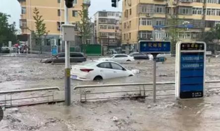 चांगचुन, चीन के पूर्वोत्तर प्रांत जिलिन के शुलान शहर में लगातार हो रही मूसलाधार बारिश के कारण...