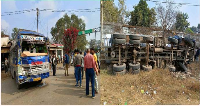 जांजगीर-चांपा. जिले के नवागढ़ में आज सुबह ट्रक और यात्री बस के बीच जोरदार भिड़ंत हो गई....