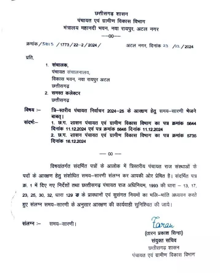 रायपुर :- छत्तीसगढ़ में त्रिस्तरीय पंचायत चुनाव के लिए आरक्षण प्रक्रिया के लिए डेडलाइन तय कर दी...