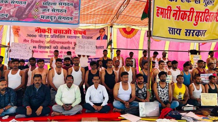 रायपुर. नौकरी से निकाले गए बीएडधारी सहायक शिक्षकों ने आज अर्धनग्न होकर सरकार के खिलाफ प्रदर्शन किया....