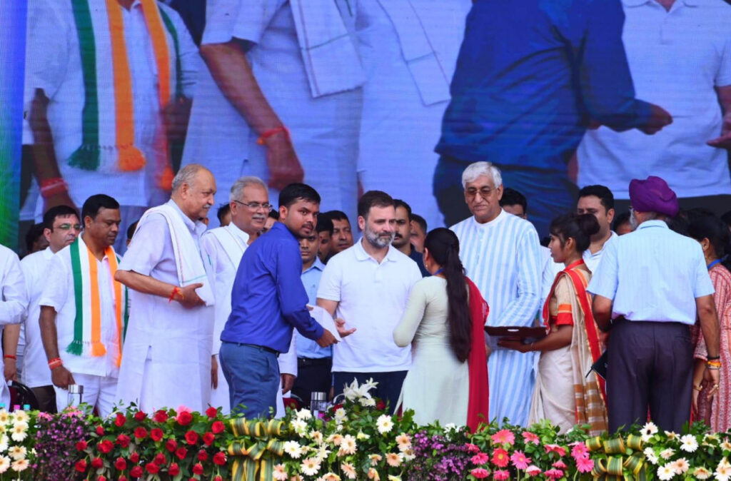 रायपुर, लोकसभा सांसद श्री राहुल गांधी और मुख्यमंत्री श्री भूपेश बघेल ने आज नवा रायपुर के मेला ग्राउंड में आयोजित ’राजीव युवा मितान सम्मेलन’ में प्रदेश में नवनियुक्त 2000 शिक्षकों को नियुक्ति पत्र प्रदान किए। सम्मेलन के मंच से प्रतीक स्वरूप इनमें से 20 अभ्यर्थियों को नियुक्ति पत्र प्रदान किए।