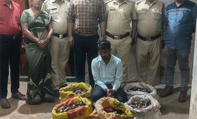 पलारी :- विधानसभा चुनाव के मद्देनजर एवं कलेक्टर चंदन कुमार के निर्देश के पालन में आबकारी विभाग जिला बलौदा बाजार को बड़ी सफलता मिली है। पलारी थाना अंतर्गत ग्राम सुंदरी में एक बार फिर उत्पाद विभाग के अधिकारियों की छापामार टीम ने भारी मात्रा में अवैध नॉन स्कैन गोवा शराब जब्त किया है. आपको बता दें कि जब्त शराब कोचियों को लेकर लगातार उच्च अधिकारियों को शिकायत मिल रही थी. सहायक उत्पाद आयुक्त विकास गोस्वामी से मिली जानकारी के अनुसार बीते 8 सितंबर की रात गुप्त सूचना के आधार पर ग्राम पलारी के सुंदरी में छापेमारी की गयी. जिस दौरान 25 वर्षीय ओम प्रकाश सायतोड़े के घर और बगीचे से बड़ी मात्रा में अवैध शराब जब्त की गई. तलाशी के दौरान 05 बड़े बोरे (जिनमें से 03 पीले रंग के तथा 02 सफेद रंग के थे) प्रत्येक बोरे में 100-100 नग कुल 500 नग नॉन स्कैन गोवा विदेशी शराब (कुल मात्रा 90 थोक ली) भरी हुई थी। ) जिसे छिपाकर रखा गया था। शराब जब्त कर आरोपी के विरूद्ध छत्तीसगढ़ आबकारी अधिनियम 1915 की धारा 34(1)(क) 34(2) 36 के तहत कार्यवाही की गई; धारा 59(ए) के तहत मामला दर्ज कर लिया गया है और आरोपी से आगे की पूछताछ की जा रही है.