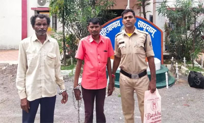 अभनपुर पुलिस ने शराब के साथ दो युवकों को पकड़ा है. जानकारी के मुताबिक पुलिस को सूचना प्राप्त हुई कि थाना अभनपुर क्षेत्रांतर्गत ग्राम बिरोदा नाला के पास दो व्यक्ति बेचने हेतु शराब रख कर परिवहन कर रहे हैं। जिस पर वरिष्ठ अधिकारियों के निर्देशन व थाना प्रभारी अभनपुर के नेतृत्व में थाना अभनपुर पुलिस की टीम द्वारा उक्त स्थान जाकर मुखबीर द्वारा बताये हुलिए के व्यक्तियों को चिन्हांकित कर पतासाजी कर पकड़ा गया। पूछताछ में व्यक्तियों ने अपना नाम (1) जीवन साहू निवासी सारखी (2) परमेश्वर साहू निवासी सारखी थाना अभनपुर रायपुर का होना बताया। टीम के सदस्यों द्वारा उनके पास रखे थैले की तलाशी लेने पर थैले में शराब रखा होना पाया गया। शराब रखने तथा बिक्री करने के संबंध में वैध दस्तावेज प्रस्तुत करने कहने पर उनके द्वारा किसी प्रकार का दस्तावेज न प्रस्तुत कर लगातार टीम के सदस्यों को लगातार गुमराह किया जा रहा था। जिस पर आरोपियों जीवन साहू एवं परमेश्वर साहू को गिरफ्तार कर उनके कब्जे से 43 पव्वा देशी मशाला मदिरा कुल 7.740 बल्क लीटर जुमला कीमती लगभग 4500/- रूपये एवं शराब परिवहन में प्रयुक्त मोटर साइकिल कीमती 10000/- जप्त कर आरोपियों के विरूद्ध थाना अभनपुर में अपराध क्रमांक 432/23 धारा 34(2) आबकारी एक्ट का अपराध पंजीबद्ध कर कार्यवाही किया गया। गिरफ्तार आरोपी- (1)जीवन साहू पिता स्व. मोतीलाल साहू उम्र 36 साल निवासी ग्राम सारखी (2) परमेश्वर उर्फ़ बल्लू साहू पिता परी साहू उम्र 56 साल ग्राम सारखी थाना अभनपुर रायपुर।