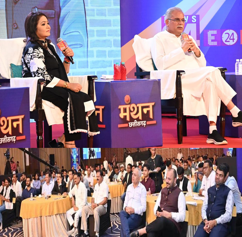 मुख्यमंत्री श्री भूपेश बघेल आज राजधानी रायपुर स्थित एक निजी होटल में न्यूज 24 द्वारा आयोजित ‘मंथन छत्तीसगढ़‘ कार्यक्रम में शामिल हुए। भूपेश का छत्तीसगढ़ मॉडल क्या है पूछने पर मुख्यमंत्री ने कहा कि छत्तीसगढ़ सरकार जनता के सर्वांगीण विकास के लिए हर संभव योजनाओं को संचालित कर समृद्ध करने का कार्य कर रही है। इसी मॉडल के अंतर्गत प्रदेश में 750 से अधिक स्वामी आत्मानंद उत्कृष्ट अंग्रेजी-हिन्दी माध्यम स्कूल खोले गए हैं। इन स्कूलों के माध्यम से उन परिवारों को राहत मिली है और बच्चे इंग्लिश मीडियम में पढ़ कर निजी स्कूल के बच्चों से आगे बढ़ रहे हैं। उन्होंने कहा कि मजदूरों, बेरोजगारों और किसानों को भी सीधे उनके खाते में राशि ट्रांसफर किए जा रहे हैं।
