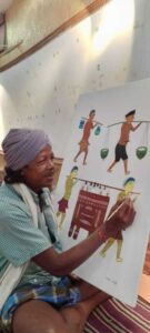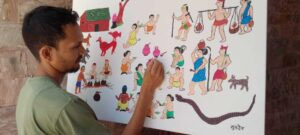*आदिवासी जन-जीवन दर्शाते हैं पेंटिंग में*