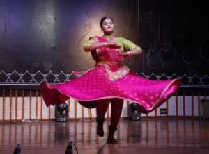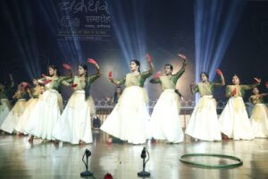 विजय शर्मा ने जसगान एवं लोक गायन के साथ मनमोहक नृत्य की प्रस्तुति दी। चंद्रा सैनी मैया तोरे जस गाओ ओ..माता जस गीत, कोरी कोरी नारियल चढ़े, ओ दाई मोर लाली लाली चुनरी ओढ़े.. चैईत के महिना दाई आबे मंझनी, बोरे बासी संग म खवाहू तोला ओ पाताल चटनी…जैसे गीतों की झड़ी से दर्शक भक्ति भाव से विभोर हो गए। सुश्री गीतिका वैष्णव ने महिषासुर मर्दिनी पर ओज पूर्ण प्रस्तुति दी। गायन में गीतिका वैष्णव, संतोष शर्मा, शौर्य आचार्य तथा वादन में ओमप्रकाश महंत, बालमुकुंद वैष्णव, पैड में रामसागर साह रहे। सुश्री अनंता पाण्डेय ने जय देव जय देव गणपति.., नमो नमो नमास्तुते के गीत पर कथक नृत्य की मनमोहक प्रस्तुति दी।