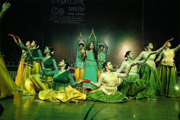 रायगढ़। चक्रधर समारोह के समापन समारोह में छत्तीसगढ़ सहित शहर के स्थानीय कलाकारों ने मनमोहक प्रस्तुति दी। इस बार का चक्रधर समारोह खास रहा। तीन दिन के आयोजन में रिकॉर्ड एक हजार से अधिक कलाकारों की प्रस्तुति दी। स्थानीय प्रतिभाओं, बाल कलाकारों के साथ राष्ट्रीय एवं अंतर्राष्ट्रीय स्तर पर ख्याति बटोर चुके कला दिग्गजों ने समारोह में शिरकत की। इंदिरा कला संगीत विश्वविद्यालय खैरागढ़ के 60 कलाकारों के दल के अलग-अलग विधाओं में प्रस्तुतियां दी गई, जिसमें वादन, छत्तीसगढ़ के राज्य गीत अरपा पैरी के धार पर छात्र-छात्राओं ने खूबसूरत नृत्य के माध्यम से दर्शकों को सराबोर कर दी। नृत्य में संपूर्ण छत्तीसगढ़ की झलक दर्शकों को देखने की मिली।