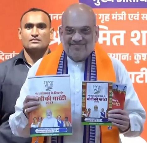 केंद्रीय गृहमंत्री शाह ने शुक्रवार को प्रदेश भाजपा मुख्यालय कुशाभाऊ ठाकरे परिसर में विधानसभा चुनाव के लिए भाजपा का संकल्प पत्र ‘मोदी की गारंटी’ जारी किया। कार्यक्रम में अमित शाह ने संकल्प पत्र जारी करते हुए प्रदेश में भाजपा की भारी बहुमत से जीत का दावा किया। कार्यक्रम में प्रदेश प्रभारी ओम माथुर, प्रदेश अध्यक्ष अरुण साव, पूर्व मुख्यमंत्री डॉ. रमन सिंह, घोषणा पत्र समिति के संयोजक विजय बघेल सहित प्रदेश के सभी प्रमुख नेता मौजूद थे।