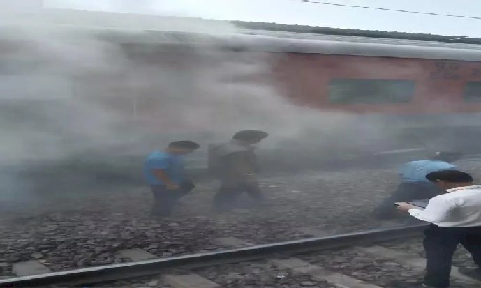 भिलाई। छत्तीसगढ़ के भिलाई स्थित पावर हाउस स्टेशन के पास अहमदाबाद एक्सप्रेस ट्रेन के B 2 कोच में लगी भीषण आग। मिली जानकारी के अनुसार आग लगने की वजह हॉट एक्सल बताई जा रही है। गनीमत है कि, सभी यात्री सुरक्षित हैं। यहां पर बड़ी दुर्घटना होते-होते टल गई। अहमदाबाद एक्सप्रेस के जनरल B 2 कोच में भीषण आग लग गई। गनीमत है कि, यात्रियों को सुरक्षित बाहर निकाल लिया गया है। अहमदाबाद एक्सप्रेस भिलाई रेलवे स्टेशन पर ठहरी थी। बताया जा रहा कि, हॉट एक्सल की वजह से आग लगी है। आग लगने की सुचना मिलते ही रेलवे विभाग यात्रियों को सुरक्षित करने में लग गए और आग पर काबू पाया। बता दें कि, पूरी अहमदाबाद ट्रेन के ब्रेक शु में आग लग गई है।