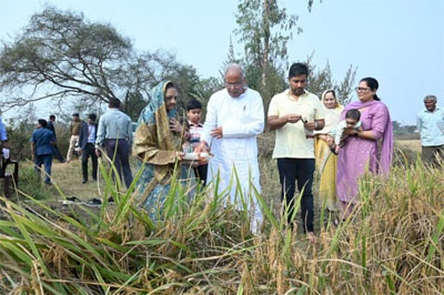 रायपुर। मुख्यमंत्री भूपेश बघेल आज सपरिवार अपने खेत पहुंचे। जहां उन्होंने खेतों में फसलों की लुआई पूरी हो जाने के बाद लुआई को अंतिम रूप देते हुए परंपरानुसार “बढ़ौना” रस्म का निर्वहन किया। उन्होंने धान फसल की कटाई की और छत्तीसगढ़ी परंपरा बढ़ौना परम्परा को निभाया, इस दौरान उनके साथ उनकी पत्नी मुक्तश्वरी बघेल, बेटे चेतन बघेल समेत परिवार के अन्य सदस्य भी मौजूद रहे।