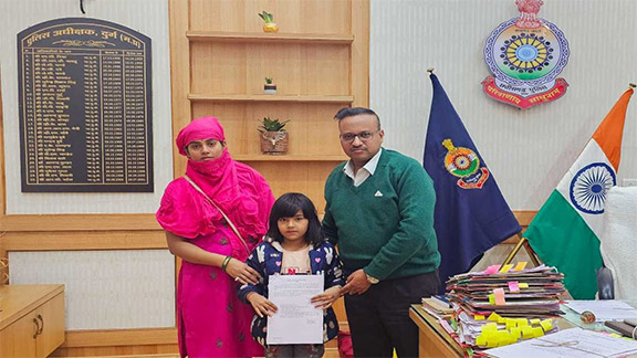 दुर्ग। दुर्ग जिले के वरिष्ठ पुलिस अधीक्षक राम गोपाल गर्ग ने आज 7 साल की मासूम अंजनी भट्ट को बाल आरक्षक के पद पर नौकरी का नियुक्ति आदेश प्रदान किया. इस दौरान वरिष्ठ पुलिस अधीक्षक ने अबोध बालिका अंजनी से आत्मीयता के साथ बातचीत कर उसका हाल जाना. बता दें कि बाल आरक्षक के रुप में भर्ती की गई बच्ची के पिता की असामयिक निधन के बाद उसे अनुकंपा नियुक्ति दी गई है. बता दें कि अंजनी भट्ट आज अपनी मां के साथ पुलिस अधीक्षक कार्यालय पहुंची थी, बच्ची को वरिष्ठ पुलिस अधीक्षक ने बालक के सिर पर हाथ फेरा और उसे बताया कि अब आप भी पुलिस बन गए हो. उनके आत्मीय व्यवहार और अनुकंपा नियुक्ति की प्रक्रिया पूर्ण कराने के लिए अंजनी के स्वजनों ने भी आभार जताया. वहीं वरिष्ठ पुलिस अधीक्षक ने दिवंगत आरक्षक अतुल भट्ट के आकस्मिक निधन पर परिवार के सदस्यों से मिलकर सांत्वना दी और परिवार को किसी भी प्रकार की आवश्यकता में दुर्ग पुलिस से सहयोग प्रदान करने के लिए आश्वास्त किया. बता दें कि अंजनी भट्ट की अनुकम्पा नियुक्ति का आदेश जारी होते ही परिवार ने ख़ुशी जाहिर की है. साथ ही दुर्ग पुलिस द्वारा सम्पूर्ण कार्यवाही जल्द कर नियुक्ति पत्र प्रदान करने पर आभार भी प्रकट किया है.