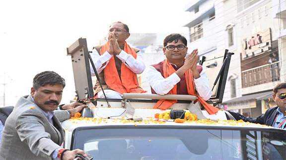 सड़क के दोनों ओर छतों में जनता अपने प्रिय नेता का अभिवादन कर रही है. फूलों से लोग स्वागत कर रहे हैं. दूर तक सड़क समर्थकों से अटी पड़ी है. काफिला कहां से शुरू हुआ है और कहां पर खत्म हुआ है. इसका आकलन करना कठिन है. मुख्यमंत्री दोनों हाथ जोड़कर लोगों का अभिवादन कर रहे हैं. लोग पुष्पवर्षा कर रहे हैं.रोड शो में जनसैलाब उमड़ गया है. कबीर चौक से गांधी चौक तक पूरी सड़क खचाखच भरी है. सामाजिकजन भी बीच-बीच में मुख्यमंत्री का स्वागत कर रहे हैं. गुजराती समाज के प्रतिनिधिमंडल ने अभी रोड शो के दौरान मुख्यमंत्री का पुष्पमाला से स्वागत किया. मुख्यमंत्री के स्वागत में चारों ओर नारे लग रहे हैं और पूरा रायगढ़ अभूतपूर्व उत्साह के माहौल में डूब गया है.