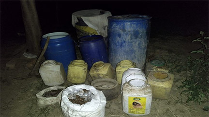 आरंग। शराब के अवैध कारोबार के खिलाफ आरंग पुलिस ने बड़ी कार्रवाई की है. पुलिस ने दबिश देकर बड़ी मात्रा में अवैध महुआ शराब जब्त किया है. इसकी कीमत 2 लाख रुपये से भी ज्यादा बताई जा रही है. वहीं अवैध शराब बनाने वाले चार व्यक्ति पुलिस को देखकर घटनास्थल से फरार हो गए हैं, जिनकी तलाश की जा रही है. मामला आरंग थाना क्षेत्र के ग्राम चिखली का है. आरंग थाना प्रभारी सत्येंद्र सिंह श्याम ने बताया कि मुखबिर से जानकारी मिलने पर ग्राम चिखली में महानदी के किनारे स्थित हीरानार नाला में पुलिस ने दबिश दी. इस दौरान पुलिस को आते देख अवैध महुआ शराब बना रहे चार व्यक्ति मौके से फरार हो गए.
