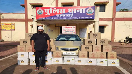 रायपुर :- छत्तीसगढ़ में नशे के खिलाफ अभियान चलाया जा रहा है। इसके तहत पुलिस की टीम, एंटी क्राइम और एंटी साईबर यूनिट की टीम लगातार कार्रवाई कर रही है। इसी कड़ी में खमरतराई जा रहे एक आरोपी को गिरफ्तार कर लिया है। उसके पास से 10 पेटी अवैध अंग्रेजी शराब जप्त किया गया। यह मामला खमरतरई थाना क्षेत्र का है।दरअसल, पुलिस को सूचना मिली थी कि, एक व्यक्ति अपने चारपहिया वाहन में अवैध रूप से शराब लेकर खमतराई की तरफ जा रहा है। टीम ने भनपुरी चौक हनुमान मंदिर के पास बस स्टैण्ड में आरोपी को पकड़ लिया। चेकिंग के दौरान उसके पास से 10 पेटी अंग्रेजी शराब जप्त किया गया। वैध दस्तावेज नहीं दिखाने पर उसे गिरफ्तार कर पूछताछ किया गया।