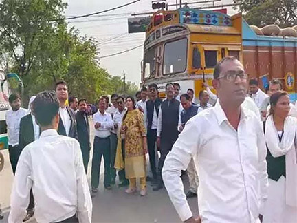 दुर्ग :- दुर्ग जिला न्यायालय के अधिवक्ता संघ के बैनर तले बड़ी संख्या में वकीलों ने दुर्ग में चक्काजाम कर दिया। उनकी मांग थी कि पक्षकार आए दिन वकीलों पर हमला कर रहे हैं। पुलिस सुनवाई नहीं कर रही है। उन्होंने जल्द ऍफ़आईआर दर्ज ना करने पर नाराजगी जताई। पुलिस प्रशासन के खिलाफ सड़क पर ही धरना प्रदर्शन शुरू कर दिया। दुर्ग जिला न्यायालय के सामने पटेल चौक के पास शनिवार शाम को बड़ी संख्या में वकील ने एकजुट होकर चक्का जाम कर दिया। सूचना मिलते ही पुलिस बल वहां पहुंचा, लेकिन वकीलों ने उनकी एक ना सुनी। वकीलों ने वहां पुलिस प्रशासन के खिलाफ जमकर नारेबाजी की। इसके बाद आनन फानन में मौके पर एएसपी अभिषेक झा पहुंचे। उन्होंने अधिवक्ता संघ की अध्यक्ष से चर्चा की और उसके बाद FIR दर्ज करने का आश्वासन दिया। इसके बाद धरना प्रदर्शन समाप्त हुआ। वही दुर्ग अधिवक्ता संघ की अध्यक्ष नीता जैन ने कहा कि एक महिला पक्षकार ने वकील को चप्पल से मारा। हमने मामले को शांत करने की कोशिश की, लेकिन महिला उल्टा वकील पर FIR दर्ज कराने के लिए थाने पहुंच गई। वहां महिला ने उल्टा आरोप लगाया कि वकील ने पहले उसके ऊपर हमला किया। उसने जबरदस्ती उसके मामले में समझौता करने का दबाव बनाया है।