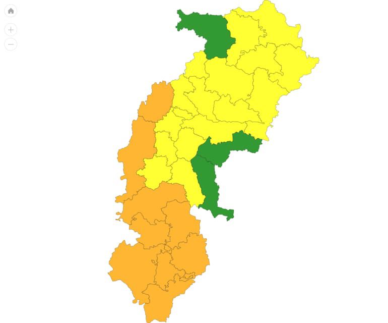 रायपुर :- छत्तीसगढ में एक बार फिर मौसम ने करवट ली है. आज सुबह से प्रदेश के कई जिलों में घने बादल छाए रहे, वहीं कई इलाकों में आंधी तूफ़ान के साथ झमाझम बारिश हो रही है. इस बीच मौसम विभाग ने राज्य के 18 जिलों के लिए येलो अलर्ट जार किया है. मौसम विभाग के मुताबिक, बालोद, बलौदाबाजार, बेमेतरा, बिलासपुर, धमतरी, दुर्ग, गरियाबंद, गौरेला पेंड्रा मरवाही, जांजगीर-चांपा, जशपुर, कोरबा, मोहला मानपुर अंबागढ़ चौकी, रायगढ़, रायपुर, राजनांदगांव, सक्ती, सारंगढ़ बिलाईगढ़, सरगुजा में कुछ स्थानों पर तेज हवा के साथ आंधी और बारिश होने की संभावना है. मौसम विभाग का कहना है कि अगले 24 घंटे तक मौसम ऐसे ही रहेगा.