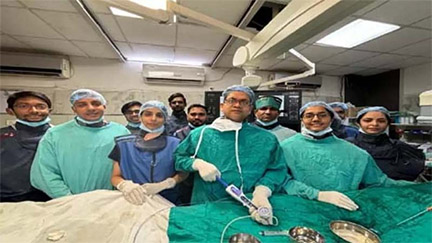 इंटरवेंशनल रेडियोलॉजिस्ट डॉ. विवेक पात्रे ने बताया कि कमर के नीचे बेहोश करके दाहिनी जांघ के फिमोरल आर्टरी में एक पतली सी तार और कैथेटर डालकर पिन होल तकनीक से एवी मालफॉर्मेशन को खून सप्लाई करने वाली बायीं और दायीं धमनी को एम्बोलिक एजेंट डालकर बंद कर दिया गया। इससे मालफॉर्मेशन में खून का बहाव रुक गया और उसकी समस्या का समाधान हो गया।