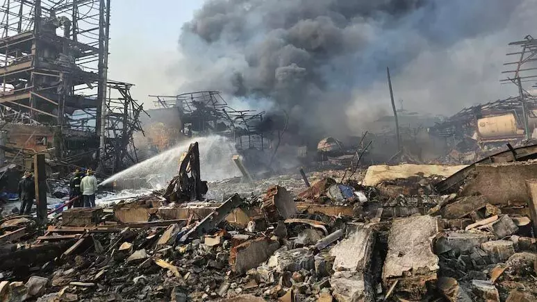 महाराष्ट्र (ठाणे) :- ठाणे के डोंबिवली में एमआईडीसी परिसर में स्थित एक केमिकल फैक्ट्री में गुरुवार को तीन विस्फोटों के बाद भीषण आग लग गई। इस घटना में छह लोगों की मौत हो गई और 48 अन्य घायल हो गए। स्थानीय लोगों ने बताया, “थोड़े-थोड़े अंतराल पर तीन विस्फोट हुए। विस्फोट इतने जबरदस्त थे कि आसपास के घर हिल गए और कुछ घरों के शीशे टूट गए। भयभीत स्थानीय लोग घरों से निकलकर बाहर आ गए। विस्फोटों की आवाज कई किलोमीटर दूर तक सुनी गई।” कुछ ही मिनटों बाद, फैक्ट्री में भीषण आग लग गई। हवा में धुएं के घने बादल छाए देखे गए। सूचना मिलने पर आधा दर्जन फायर टेंडर, पानी के टैंकर और बचाव दल मौके पर पहुंचे। महाराष्ट्र के डिप्टी सीएम देवेंद्र फडणवीस ने कहा, “विस्फोट और आग लगने की घटना में कम से कम छह लोगों की मौत हो गई। जबकि 48 अन्य को फैक्ट्री से बचाया गया और पास के अस्पतालों में पहुंचाया गया।”.