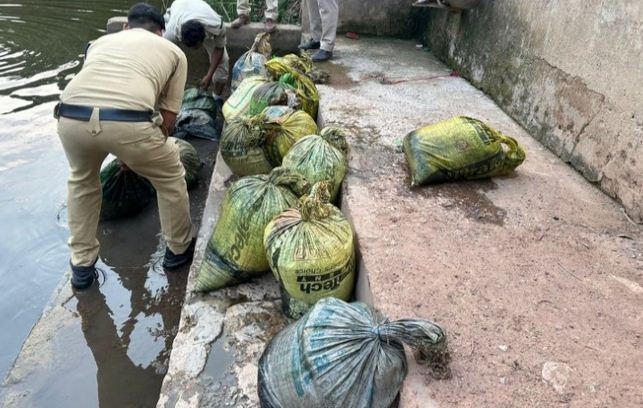 सक्ती – थाना मालखरौदा अंतर्गत स्थित ग्राम चारपारा में अवैध रूप से शराब बनाने की सूचना पुलिस अधीक्षक सक्ती को लगातार मिल रही थी, पुलिस के द्वारा अवैध रूप से शराब बिक्री करने वालो के विरुद्ध लगातार कार्यवाही उपरांत भी अवैध शराबियों के द्वारा शराब बनाना एवं बेचना बंद नहीं किया गया है, चोरी छुपे अवैध रूप से शराब बना एवं बेच रहे है । उक्त सूचना के आधार पर पुलिस अधीक्षक शक्ति, सुश्री अंकिता शर्मा के द्वारा एसडीओपी सक्ती मनीष कुंवर को ग्राम चारपारा, पुलिस टीम लेकर अवैध रूप से शराब बनाने एवं बिक्री करने वालों के विरुद्ध कार्रवाई करने हेतु निर्देशित दिया गया था, इसी तारतम्य में दिनांक 28.05.24 को एसडीओपी सक्ती मनीष कुंवर के द्वारा थाना प्रभारी डभरा प्रशिक्षु उप पुलिस अधीक्षक चंद्रहास सिन्हा, चौकी प्रभारी अड़भार कमल मेरिशा तथा थाना मालखरौदा के पुलिस टीम तैयार कर ग्राम चारपारा में रेड कार्यवाही किया गया, हालांकि इस दौरान संदिग्धों के घर में शराब तो नहीं मिला लेकिन महुआ शराब बनाने के लिए गांव के तालाब में डुबाए गए महुआ (लहान) भारी मात्रा में करीब चार क्विंटल, तालाब से निकाल कर नष्ट किया गया । इस दौरान आरक्षक सहदेव यादव और नन्ही यादव के द्वारा तालाब के पानी में उतरकर तालाब के अंदर से महुआ पाश (लहान) को निकाला गया तथा पुलिस टीम के द्वारा उसे नष्ट किया गया । उक्त कार्यवाही में सहायक उप निरीक्षक राधे श्याम राठौर, प्रधान आरक्षक दामोदर जायसवाल,अयूब खान,पुष्पेंद्र कंवर, आरक्षक सहदेव यादव, नन्ही यादव, शरद सिदार,अजय खैरवार, पवन शुक्ला , सूरज सिदार, धनेश्वर दिवाकर महिला आरक्षक दुलेश्वरी कंवर, सरिता भारद्वाज का सराहनीय योगदान रहा ।