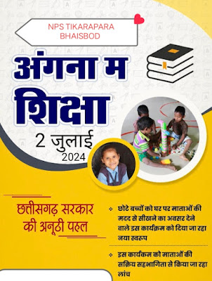 धमतरी (काला सच न्यूज़):- बच्चों में शिक्षा गुणवत्ता सुधार के लिए सुघ्घर पढ़वईया कार्यक्रम के तहत अंगना में शिक्षा का आयोजन आगामी 02 जुलाई को किया जाएगा। प्रदेश में माताओं को जोड़कर बच्चों को घर पर सीखने में सहयोग देने के लिए अंगना में शिक्षा कार्यक्रम को अच्छा प्रतिसाद मिला है।