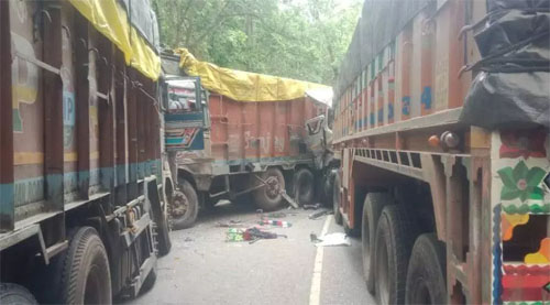 कबीरधाम :- आज सुबह तीन ट्रकों में टक्कर होने से कबीरधाम जिले की चिल्फी घाटी में 10 किमी जाम लग गया। सडक़ के दोनों ओर सैकड़ों गाडिय़ों की लाइनें लग गई। काफी मशक्कत के बाद 6 घंटे बाद पुलिस ने दोपहर 3 बजे जाम खुला और आवागमन शुरू हुआ। जिले से होकर गुजरने वाली नेशनल हाईवे 30 चिल्फी घाटी में अकलघरिया के पास आज सवेरे 8 से 9 बजे के दरमियान तीव्र मोड़ में तीन ट्रकों की आपस में टक्कर हो जाने गई। हादसे के बाद नेशनल हाईवे में गाडिय़ों की लंबी कतारे लग गई हैं। दोनों ओर से छोटी बड़ी सभी वाहनों का आवागमन नहीं हो पा रहा है।