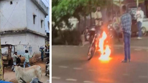 बाइक पूरी तरह जलकर खाक, दो गुटों में भी हुई मारपीट :-
