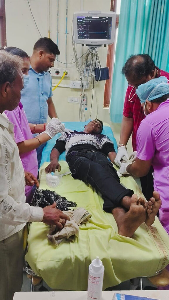 जिसकी सूचना थाना आमानाका पुलिस को मिलने पर थाना आमानाका पुलिस द्वारा तत्काल एम्स अस्पताल पहुंचकर मानसिक रोगी ओमप्रकाश शाह जो कभी भी गंभीर अपराध घटित कर सकता था, कोे नियंत्रण करने लिये सउनि. सुरेश मिश्रा एवं आरक्षक भारतेन्दु साहू व अन्य पुलिस स्टाफ द्वारा अपनी जान की परवाह किये बिना घेराबंदी कर चाकू छीनने का प्रयास करने लगे कि मानसिक रोगी ओमप्रकाश शाह द्वारा अपने हाथ में रखंे चाकू से हमला कर सउनि. सुरेश मिश्रा एवं आरक्षक भारतेन्दु साहू को जख्मी कर लहुलूहान कर दिया गया, उसके बाद भी मानसिक रोगी को पकड़कर नियंत्रित किया गया। थाना आमानाका पुलिस के द्वारा मानवता का परिचय देते हुये मानसिक रोगी को पकड़कर उपचार के लिये एम्स अस्पताल रायपुर मे भर्ती कराया गया।