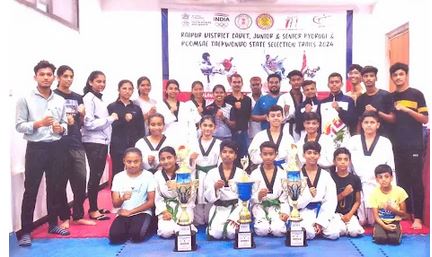 रायपुर। रायगढ़ क्लब रायगढ़ में तीन दिवसीय राज्य स्तरीय 20 वीं ताइक्वांडो प्रतियोगिता का आयोजन दिनांक 5 जुलाई से 7 जुलाई 2024 को संपन्न हुई। इस प्रतियोगिता में रायपुर, कोरबा, बिलासपुर, दुर्ग, कोरबा, अंबिकापुर, बलौदाबाजार, धमतरी, सरगुजा, महासमुंद जिले के 400 खिलाडिय़ों ने हिस्सा लिया। इस प्रतियोगिता का आयोजन रायगढ़ जिला अडानी फाउंडेशन के तत्वावधान में किया गया। प्रतियोगिता में आल ओवर चैम्पियनशिप की ट्राफी रायपुर को मिली। सीनियर-जूनियर ग्रुप चैम्पियनशिप ट्राफी में भी रायपुर का कब्जा रहा। सीनियर ग्रुप में विजेता रायपुर और उपविजेता कोरबा रहा। उक्त जानकारी रायपुर जिला ताईक्वांडो संघ के सचिव महेश द्वारा दी गई। इस टीम के मुख्य कोच थे अशोक यादव, सहायक कोच मोहन प्रताप और रीना साहू थे।