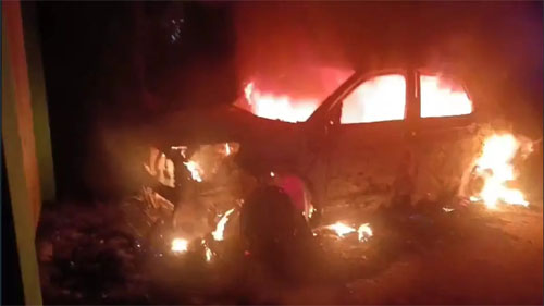 बलौदाबाजार :- निपनिया चौकी प्रभारी की कार को देर रात अज्ञात तत्वों ने आग के हवाले कर दिया. आगजनी की सूचना पर जब तक फायर ब्रिगेड मौके तक पहुंचती तब तक कार पूरी तरह जलकर खाक हो चुकी थी. फिलहाल, आग कैसे लगी और किसने लगाई, यह तो पता नहीं चला है. घटना के बाद पुलिस जांच में जुटी है.