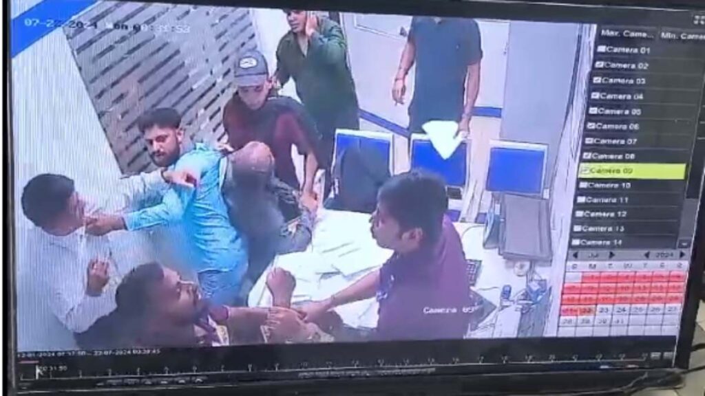 तखतपुर :- बैंक में घूसकर मैनेजर और असिस्टेंट मैनेजर से मारपीट करने और जानलेवा हमला करने का मामला सामने आया है. यह घटना सीसीटीवी कैमरे में कैद हो गई है. पीडित मैनेजर ने तखतपुर थाने में मामले की शिकायत की है. यह मामला तखतपुर थाना क्षेत्र के भारतीय स्टेट बैंक का है.