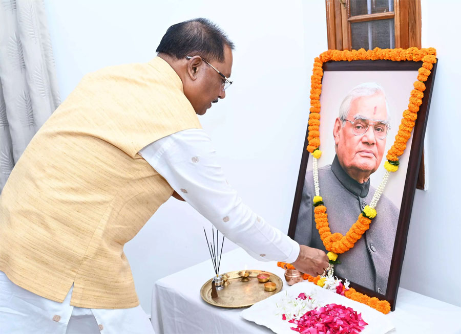 रायपुर :- मुख्यमंत्री विष्णुदेव साय ने आज यहां अपने निवास में पूर्व प्रधानमंत्री भारत रत्न श्रद्धेय स्वर्गीय श्री अटल बिहारी वाजपेयी की पुण्यतिथि के अवसर पर उनके छायाचित्र पर माल्यार्पण कर उन्हें नमन किया। इस मौके पर डॉ. रामप्रताप सिंह भी मौजूद रहे। मुख्यमंत्री साय ने इस अवसर पर कहा कि श्रद्धेय स्वर्गीय अटल जी हमारे राज्य निर्माता है। छत्तीसगढ़वासियों का उनसे विशेष लगाव है। उन्होंने इस भौगोलिक क्षेत्र को नए राज्य के रूप में आकर देकर प्रदेशवासियों की भावनाओं का सम्मान किया। वे बहुमुखी प्रतिभा के धनी थे। पत्रकार, कवि और राजनेता के रूप में उन्होंने अपनी अलग पहचान बनाई थी।
