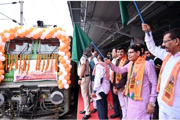 रायपुर। मुख्यमंत्री विष्णुदेव साय के पहल पर शुरू की गई रामलला दर्शन योजना के तहत चलाई जा रही विशेष ट्रेन मंगलवार को रायपुर रेल्वे स्टेशन के प्लेटफार्म नंबर-07 से रवाना हुई। राजस्व मंत्री टंक राम वर्मा ने हरी झंडी दिखाकर ट्रेन को रवाना किया। इस विशेष ट्रेन से 850 श्रद्धालुओं का जत्था अयोध्या धाम के लिए रवाना हुआ। इस यात्रा से श्रद्धालुओं में भारी उत्साह है। श्रद्धालुगण भगवान राम का जय-जयकार करते हुए अयोध्या धाम के लिए निकल चुके हैं। ट्रेन में श्रद्धालु भजन-कीर्तन करते हुए भक्तिमय माहौल में रामलला के दर्शन को जा रहे है।