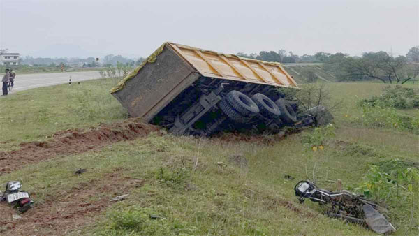 यह हादसा NH 130 पर लखनपुर थाना क्षेत्र के ग्राम जजगा मोहनपुर मोड़ के पास हुआ. बाइक सवारों को टक्कर मारने के बाद हाईवा अनिंत्रित होकर पलट गया है. पुलिस मृतक युवकों की शिनाख्ती में जुई है.