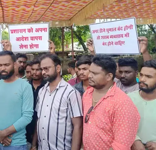 आदेश में 55 डीबी में साउंड और धुमाल को बजाने कहा गया है, लेकिन यह संभव नहीं है क्योंकि एक बार का हार्न 90 डीबी से ज्यादा बजता है। डीजे संचालकों ने विरोध जताया और इस आदेश के खिलाफ जमकर नारे लगाए। उन्होंने अपने हाथों में रखे तख्ती में यह लिख रखा था कि डीजे धुमाल बंद होगा तो शराब व्यवसाय भी बंद होना चाहिए। भगवान से बड़ा क्या प्रशासन है। प्रशासन को अपना आदेश वापस लेना होगा। उनका कहना था कि साउंड सिस्टम, धुमाल के बंद होने से कई लोग बेरोजगार हो जाएंगे।