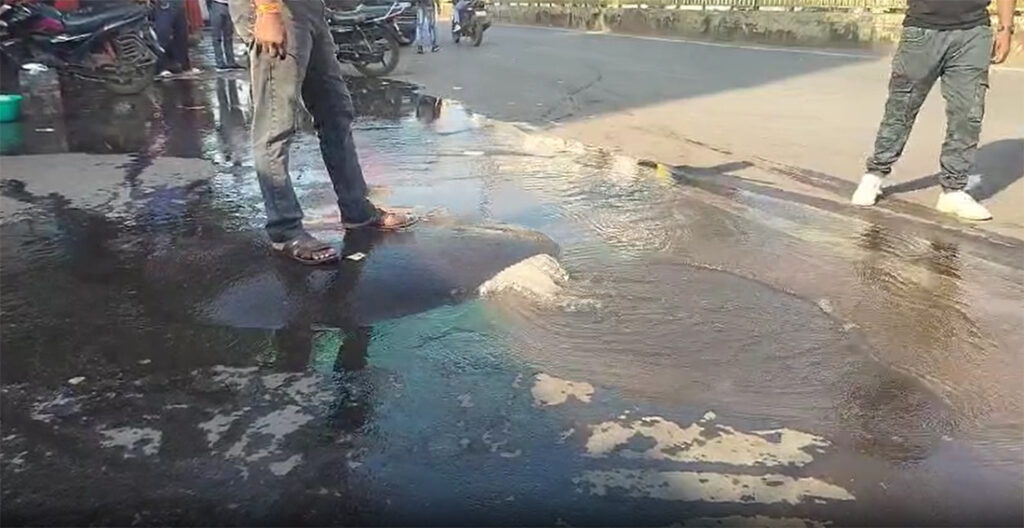 रायपुर :- राजधानी रायपुर के फाफाडीह चौक में अचानक पाइप लाइन फूट गई, जिससे हजारों लीटर पानी सड़क पर बहकर बर्बाद हो गया. अब भी पानी का तेज बहाव जारी है. यह घटना सोमवार दोपहर करीब साढ़े तीन बजे की बताई जा रही है. बीते एक घंटे से लगातार पानी बर्बाद हो रहा है.