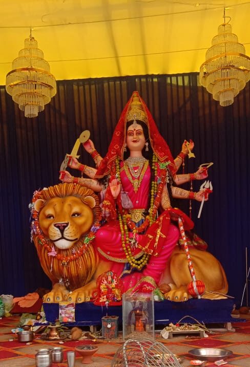 नगर में विराजित में शक्ति स्वरूपा मां दुर्गा का विसर्जन झांकी में अनेक स्थानों अलग अलग पंडाल बनाकर समाज सेवियों तथा नगर वासियों द्वारा मां दुर्गा विसर्जन के दौरान स्वागत फूल माला और पटाखों से किया गया।