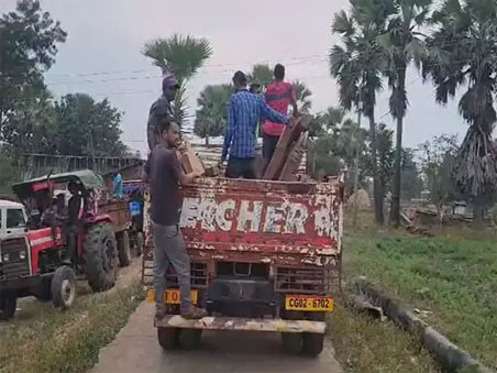 बीजापुर :- जिले में वन विभाग की टीम ने एक गांव में छापेमारी कर करीब 1 ट्रक सागौन लकड़ी बरामद की थी। अब इसके विरोध में गांव के ग्रामीण उतर आए हैं। ग्रामीणों ने सड़क पर चक्का जामकर दिया। हालांकि, प्रशासन की समझाइश के बाद ग्रामीणों नर जाम खोल दिया है। दरअसल, यह पूरा मामला बीजापुर-भोपालपटनम मार्ग पर बसे मोदकपाल गांव का है। एक दिन पहले इंद्रावती टाइगर रिजर्व और वन मंडल बीजापुर की टीम ने पूरे गांव में छापेमारी की थी। अलग-अलग घरों से सागौन चिरान समेत सागौन से बने फर्नीचर, चौखट के साथ ही अन्य सामान बरामद किया था।
