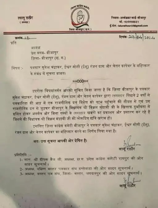 छत्तीसगढ़ के बीजापुर में पत्रकार की हत्या कर दी गई। रिपोर्टर मुकेश चंद्राकर की लाश रिश्तेदार के बैडमिंटन कोर्ट कैंपस में बने सेप्टिक टैंक में मिली है। लाश क छिपाने के बाद टैंक को 4 इंच कंक्रीट से ढलाई कर पैक कर दिया गया था। शनिवार को मुकेश चंद्राकर का अंतिम संस्कार किया गया। जांच में पता चला कि, मुकेश चंद्राकर का पहले गला घोंटा गया। बाद में सिर पर कुल्हाड़ी मारी। इस हमले से मुकेश के सिर पर ढाई इंच गड्ढा हो गया। पुलिस ने 3 आरोपियों को गिरफ्तार किया है। रिश्तेदार सुरेश चंद्राकर के ठिकाने पर बुलडोजर भी चलाया गया है।