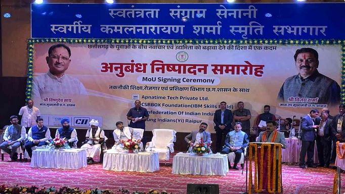 उपमुख्यमंत्री विजय शर्मा ने कहा कौशल विकास, तकनीकी शिक्षा एवं रोजगार विभाग और सीएसआरबॉक्स फाउंडेशन, सीआईआई यंग इंडियंस, अपनाटेक प्राइवेट लिमिटेड के प्रतिनिधि के मध्य अनुबंध हुआ है. अपना टेक प्राइवेट लिमिटेड विभाग से बेरोजगारी की जानकारी साझा कर रोजगार निर्माण और रोजगार के नए अवसर तलाश करेगा. सीएसआरबॉक्स फाउंडेशन IBM द्वारा 25 हजार छात्रों को सॉफ्ट स्किल प्रशिक्षण देकर रोजगार प्रदान करेगा. वहीं सीआईआई यंग इंडियंस स्थानीय उद्योगों से छात्रों को जोड़कर, क्षमता वृद्धि के लिए प्रशिक्षण देकर रोजगार के अवसर उत्पन्न करेगा.