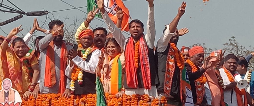 काला सच न्यूज़, अमलेश्वर। दुर्ग। नगरीय निकाय चुनाव के लिए आज प्रचार प्रसार के आखिरी दिन भाजपा ने विशाल रैली निकाल कर शक्ति प्रदर्शन किया। भाजपा अध्यक्ष प्रत्याशी दयानंद सोनकर के समर्थन में इस महारैली में हजारों की संख्या में लोग शामिल हुआ। सैकड़ों युवाओं ने बाइक रैली के साथ इस रैली में शामिल हुए।