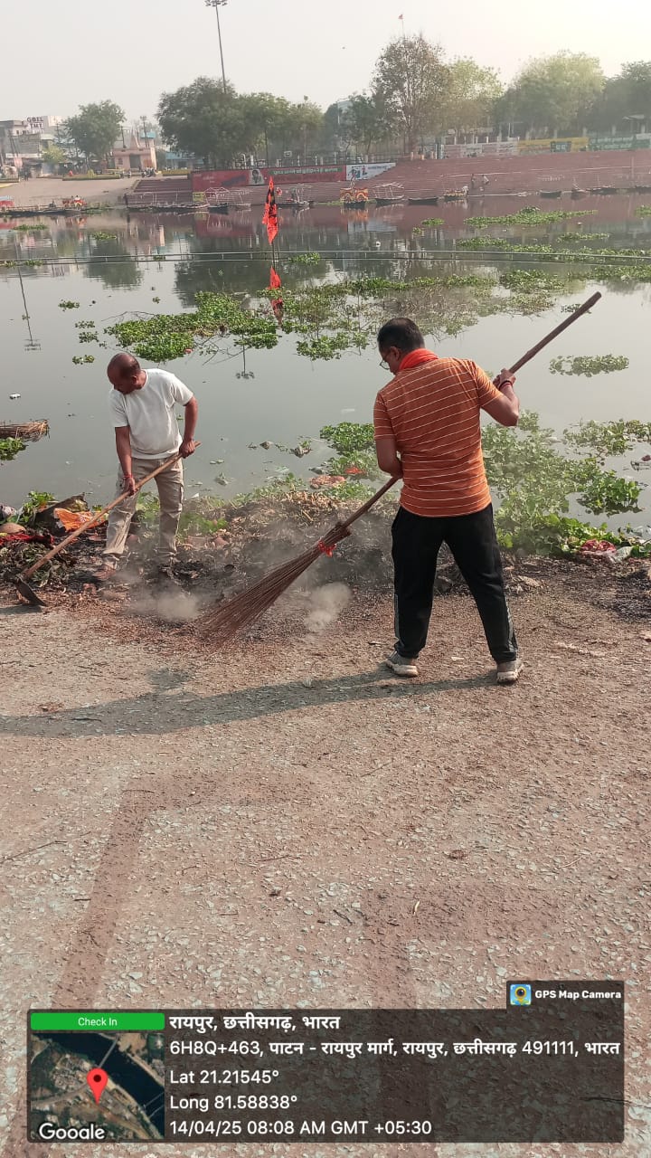 काला सच न्यूज़, अम्लेश्वर। आज भारत रत्न स्वर्गीय डॉ भीमराव रामजी अंबेडकर जी की जयंती के अवसर पर अमलेश्वर के खारुन नदी के घाट को सफाई करने के लिए वार्ड नंबर 01 के पार्षद डॉक्टर आलोक पाल के द्वारा आह्वान किया गया।