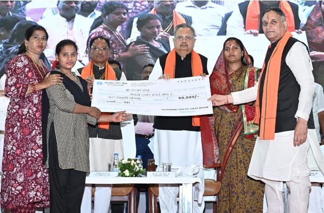 रायपुर-मुख्यमंत्री श्री विष्णु देव साय राजधानी रायपुर के मेडिकल कॉलेज स्थित अटल बिहारी वाजपेयी सभागार में छत्तीसगढ़ नि:शक्तजन वित्त एवं विकास निगम के नवनियुक्त अध्यक्ष के पदभार ग्रहण एवं अभिनंदन समारोह में शामिल हुए। उन्होंने छत्तीसगढ़ नि:शक्तजन वित्त एवं विकास निगम के नवनियुक्त अध्यक्ष श्री लोकेश कावडिय़ा को नए दायित्व के लिए बहुत-बहुत बधाई एवं शुभकामनाएं दीं। इस मौके पर मुख्यमंत्री श्री साय ने छत्तीसगढ़ नि:शक्तजन वित्त एवं विकास निगम का नाम परिवर्तित कर छत्तीसगढ़ दिव्यांग जन वित्त एवं विकास निगम करने की घोषणा की। साथ ही मुख्य मंच से इस अवसर पर 15 दिव्यांग हितग्राहियों को ऋण, 11 दिव्यांग हितग्राहियों को ऋण अदायगी करने पर ब्याज सब्सिडी एवं श्रवण बाधित दिव्यांग को श्रवण यंत्र प्रदान किया गया। मुख्यमंत्री श्री साय ने इस अवसर पर कहा कि हमारी सरकार दिव्यांगों के समग्र विकास के लिए प्रतिबद्ध है। दिव्यांगों के जीवन स्तर को बेहतर करने के लिए छत्तीसगढ़ की सरकार द्वारा विशेष प्रयास किए जा रहे हैं। उन्होंने कहा कि हमें दिव्यांग बच्चों का सर्वे कर उनके व्यवसाय एवं नए स्टार्टअप के लिए ऋण प्रदान कर मदद करनी चाहिए, ताकि उनके जीवन स्तर में सकारात्मक सुधार आ सके। विधानसभा अध्यक्ष डॉ. रमन सिंह ने कहा कि दिव्यांगजनो के जीवन में खुशहाली लाने के लिए हमें हर संभव प्रयास करना चाहिए। उन्होंने कहा कि जब प्रधानमंत्री श्री नरेंद्र मोदी जी छत्तीसगढ़ प्रवास के दौरान दंतेवाड़ा जिले में आए थे, तब दिव्यांगजनों से उनका विशेष लगाव देखने को मिला था। आज हमारी सरकार ने बेहद अनुभवी सामाजिक कार्यकर्ता को इसकी जिम्मेदारी दी है, जिसका सीधा लाभ दिव्यांग साथियों को मिलेगा। महिला एवं बाल विकास मंत्री श्रीमती लक्ष्मी रजवाड़े ने कहा कि हमारी सरकार ‘सबका साथ, सबका विकास’ के संकल्पों के आधार पर दिव्यांगों को आर्थिक रूप से सक्षम बनाने एवं उनके कौशल विकास पर जोर दे रही है। इस अवसर पर उन्होंने लोकेश कावडिय़ा को नए दायित्व के लिए बहुत-बहुत बधाई एवं शुभकामनाएं दीं। पदभार ग्रहण समारोह में शासकीय दिव्यांग स्कूल माना के छात्र-छात्राओं द्वारा बहुत ही आकर्षक गीत गाया गया, जिसने सबका मन मोहा।इसके साथ ही राजनांदगांव के दिव्यांग स्कूल के श्रवण बाधित छात्रों द्वारा देशभक्ति नृत्य का मंचन भी किया गया। इस अवसर पर वन मंत्री श्री केदार कश्यप, राजस्व मंत्री श्री टंक राम वर्मा, विधायक श्री राजेश मूणत, श्री मोतीलाल साहू, श्री पुरंदर मिश्रा, रायपुर नगर निगम महापौर श्रीमती मीनल चौबे सहित विभिन्न मंडल आयोगों के अध्यक्षगण, छत्तीसगढ़ नि:शक्तजन वित्त एवं विकास निगम के अधिकारी-कर्मचारी तथा बड़ी संख्या में दिव्यांग छात