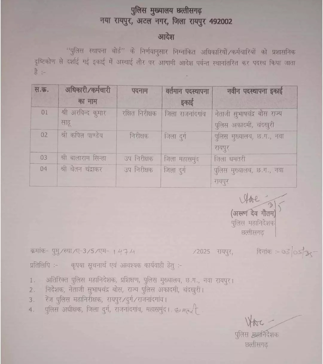 रायपुर :- फरार सटोरिया के साथ पार्टी में शामिल होना दो थाना प्रभारियों को महंगा पड़ गया। सोशल मीडिया पर वायरल हुई तस्वीरों ने न सिर्फ पुलिस विभाग की छवि पर सवाल खड़े कर दिए, बल्कि संबंधित अधिकारियों पर कार्रवाई की नौबत भी आ गई। दरअसल, पुलिस रिकॉर्ड में दर्ज एक फरार सटोरिया के साथ पार्टी में शामिल हुए जामुल के थाना प्रभारी कपिल देव पांडेय और छावनी के तत्कालीन थाना प्रभारी, वर्तमान में पुलिस लाइन में पदस्थ उप निरीक्षक चेतन चंद्राकर की तस्वीरें सोशल मीडिया में तेजी से वायरल हुई।
