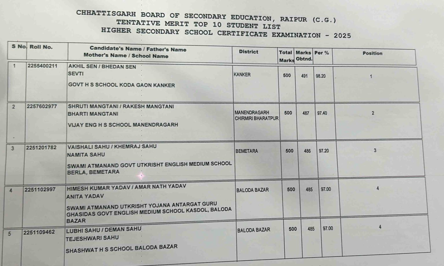 रायपुर :- मुख्यमंत्री विष्णुदेव साय ने आज 12वीं बोर्ड 2025 का परिणाम जारी किया. इस साल 12वीं का रिजल्ट 81.87 प्रतिशत रहा, जबकि पिछले साल 12वीं का रिजल्ट 80.74% रहा था. इस बार कांकेर जिले के छात्र अखिल सेन ने 98.20 प्रतिशत अंक के साथ टॉप किया है. वहीं 97.40 प्रतिशत के साथ मनेंद्रगढ़ की श्रुति मंगतानी दूसरे नंबर पर रही.