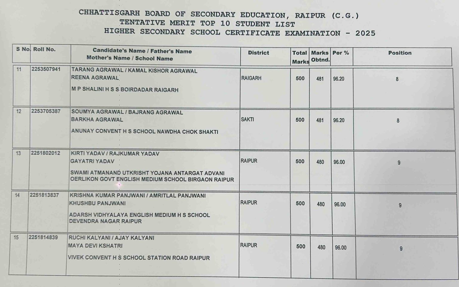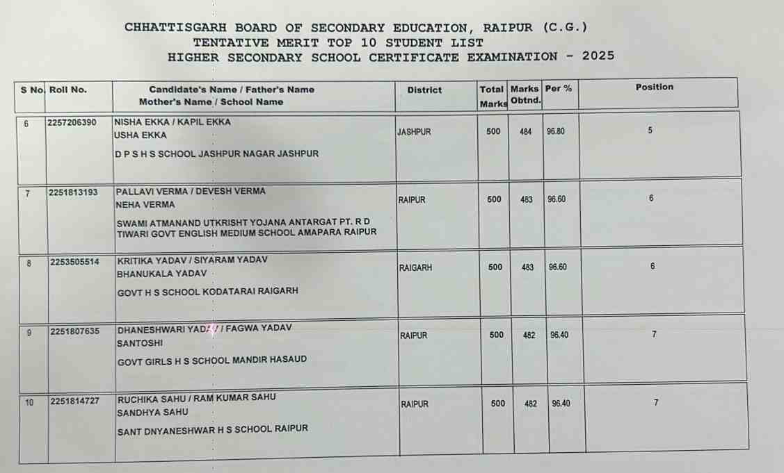 बता दें कि इस साल कक्षा 12वीं में 2 लाख 40 हजार 356 विद्यार्थियों ने परीक्षा दी थी. इसमें से 81.87 प्रतिशत छात्र उत्तीर्ण हुए हैं. छत्तीसगढ़ बोर्ड कक्षा 10वीं, 12वीं का परिणाम सीजीबोर्ड की आधिकारिक वेबसाइटों cgbse.nic.in, results.cgbse.nic.in, cg.nic.in और results.cg.nic.in पर जारी किया गया है. परीक्षार्थी यहां अपना रिजल्ट देख सकते हैं.