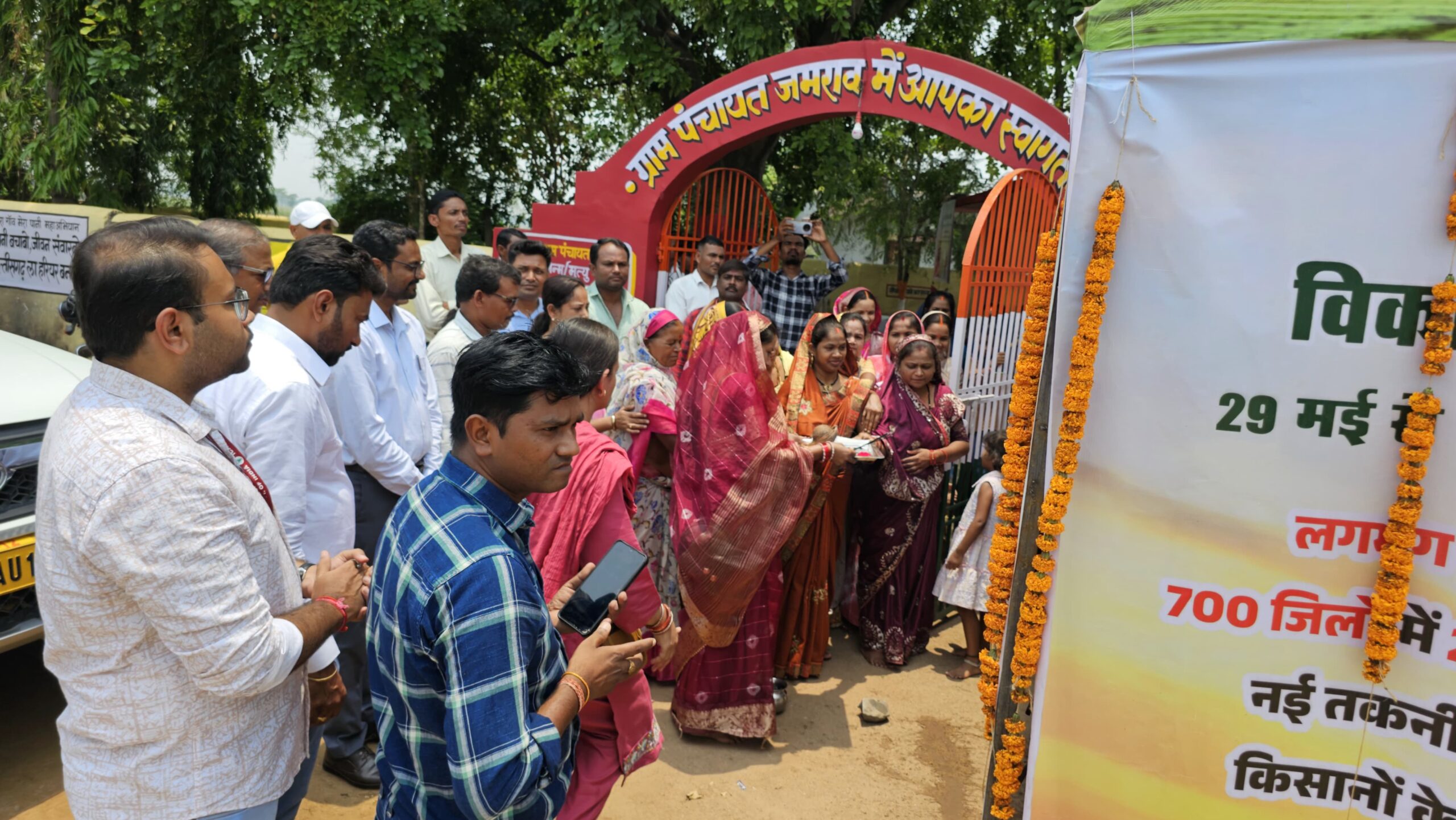 ग्राम पंचायत जमराव में ‘विकसित कृषि संकल्प यात्रा’ के अंतर्गत पहुंचे प्रचार रथ का भव्य स्वागत के बाद ग्रामीणों को उन्नत कृषि तकनीकों, फसल विविधीकरण, जैविक खेती, सिंचाई के आधुनिक साधनों एवं केंद्र व राज्य सरकार की विभिन्न किसान हितैषी योजनाओं की जानकारी दी गई। कार्यक्रम में बड़ी संख्या में किसान, महिला समूह, युवाओं एवं ग्रामीण जनों ने उत्साहपूर्वक भाग लिया।