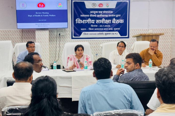 रायपुर, स्वास्थ्य विभाग की योजनाओं की प्रगति और क्रियान्वयन की समीक्षा हेतु जिला अस्पताल सुकमा के सभाकक्ष में आयुक्त सह संचालक स्वास्थ्य सेवाएं डॉ. प्रियंका शुक्ला की अध्यक्षता में समीक्षा बैठक आयोजित की गई। बैठक में स्वास्थ्य विभाग की प्रमुख योजनाओं, उनके लक्ष्यों, प्राप्तियों और कार्यों की विस्तार से चर्चा की गई।
