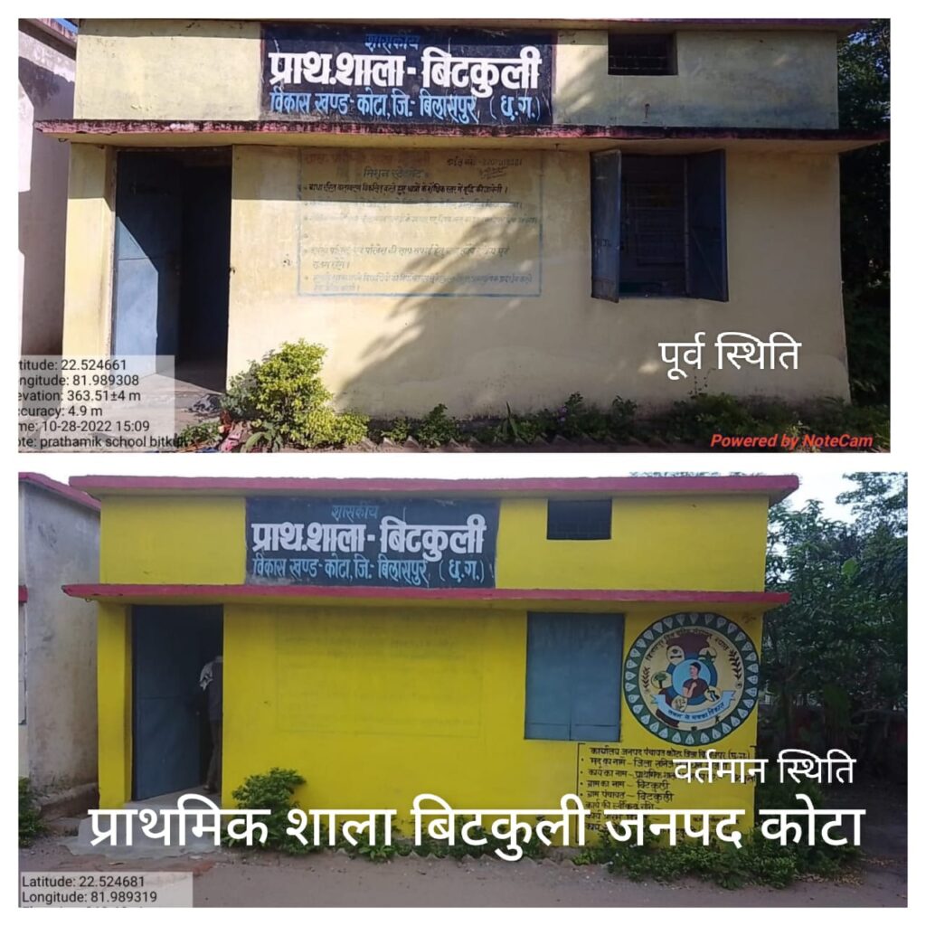 रायपुर, प्रदेश की शालाओं में उच्च स्तर की अधोसंरचनात्मक सुविधाएं विकसित करने के लिए राज्य सरकार द्वारा मुख्यमंत्री स्कूल जतन योजना शुरू की गई है। बिलासपुर जिले के 1365 स्कूलों को संवारने का कार्य किया जा रहा है। मुख्यमंत्री श्री भूपेश बघेल की मंशानुरूप स्कूलों का कायाकल्प होने से बच्चों को पढ़ाई के लिए बेहतर परिवेश मिलेगा। कलेक्टर श्री सौरभ कुमार के मार्गदर्शन में इस योजना के तहत स्कूल भवनों को संवारने का कार्य निरंतर जारी है। 74 करोड़ 74 लाख 59 हजार रूपए की लागत से 1365 स्कूलों का कायाकल्प किया जा रहा है। इन स्कूलों में छतों को सुधारने का काम, पॉलिश, दीवारों में रंगरोगन, शौचालयों की मरम्मत के साथ साज सज्जा का कार्य किया जा रहा है। स्कूल भवनों की पुताई का काम प्राकृतिक गोबर पेंट से किया जा रहा है। इससे स्कूल भवन देखने में काफी आकर्षक लग रहे है।